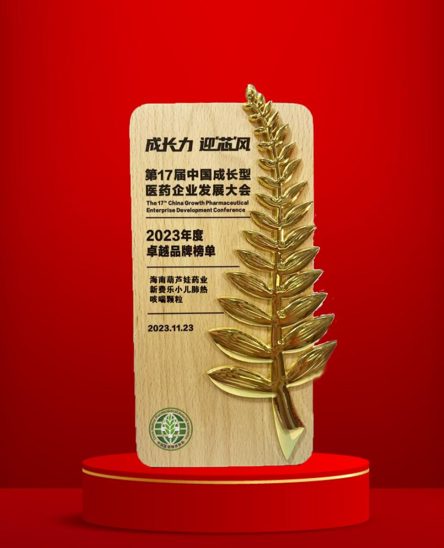 11月22日至25日,由中国医药物资协会和厦门市人民政府主办的第17届中国成长型医药企业发展大会在厦门拉开帷幕。会上,pg电子药业集团党委书记、董事长刘景萍获得“金叶奖·2023年度医药行业风云人物奖”,集团旗下产品新费乐®小儿肺热咳喘颗粒荣膺“2023年度卓越品牌奖”。